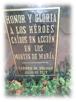 Con la presencia del Ministro de Defensa, Juan Carlos Pinzon, la Cúpula Militar, autoridades civiles del Departamento de Bolívar, el Pasado viernes 17 de agosto se llevó a cabo la inauguración en el parque Central del Municipio del Carmen de Bolívar del monumento de los héroes de la Armada Nacional Caídos y Heridos en combate en los Montes de María.