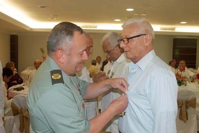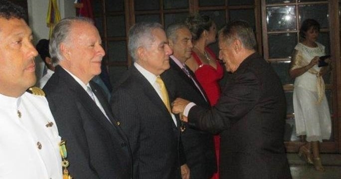 Imágenes de la Condecoración "Rafael Reyes" que le impuso al MY IM Jorge Caicedo Correa, la Asociación de Oficiales Retirados ACORE- Barranquilla, el sábado 29 de noviembre. La medalla la colocó el Coronel Buitrago de la Policía Nacional, con la asistencia del Calm John Carlos Flórez Beltrán. Seguidamente pronunció palabras de agradecimiento a los asistentes a la ceremonia en el Hotel Windsor.