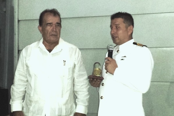 Especial participación del Sr Capitán de Navío Nelson Cruz Lazo, de la República de Honduras, graduado de la ENAP y de los señores capitanes Jeremías de León (MC 05-39) y del capitán Carlos Liao (MC-32/81-85), provenientes de Panamá, graduados de la ENAP y actuales pilotos prácticos del canal de Panamá, quienes hicieron entrega al Sr almirante Ramírez de una placa de la Unión de Prácticos y la Asociación de Prácticos del Canal de Panamá.