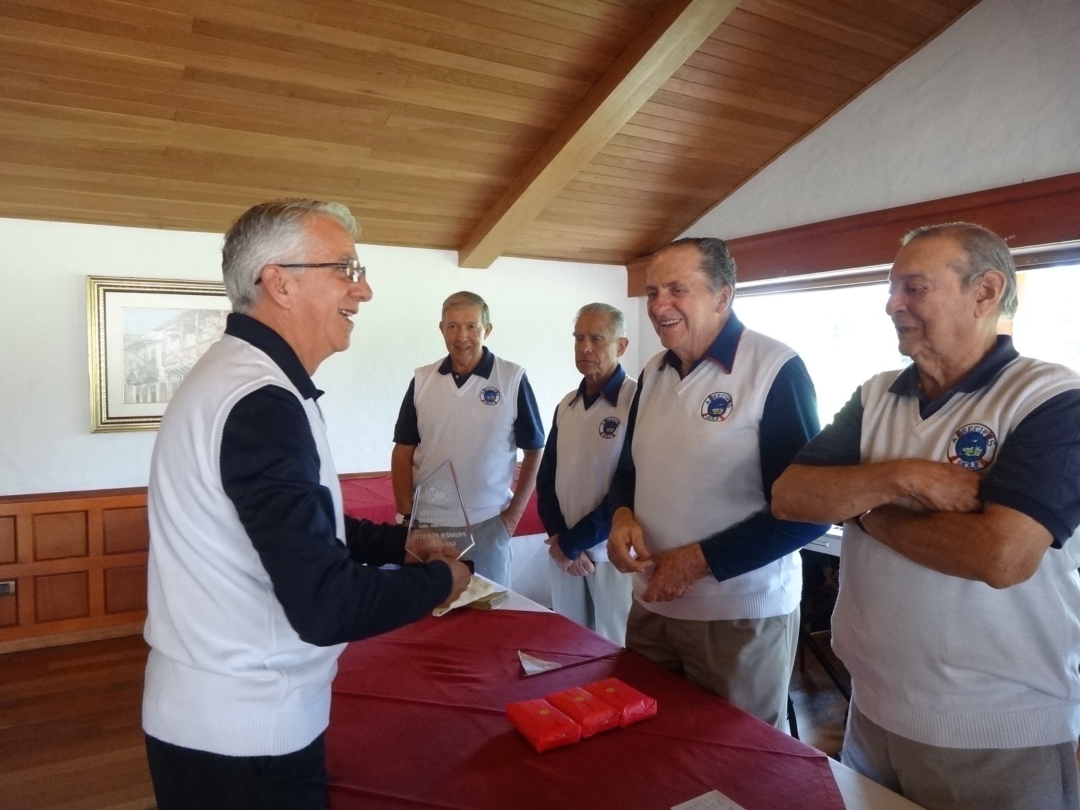 Eduardo Calderón Campeón absoluto del Torneo "Banderitas" recibe el trofeo de manos del Pdte. de la Junta Directiva
