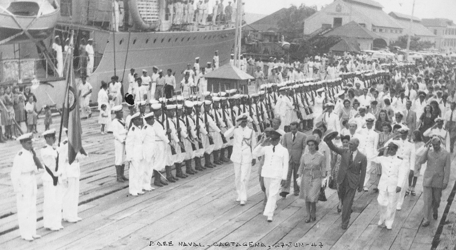 EL PRESIDENTE MARIANO OSPINA PEREZ EN LA CEREMONIA NAVAL