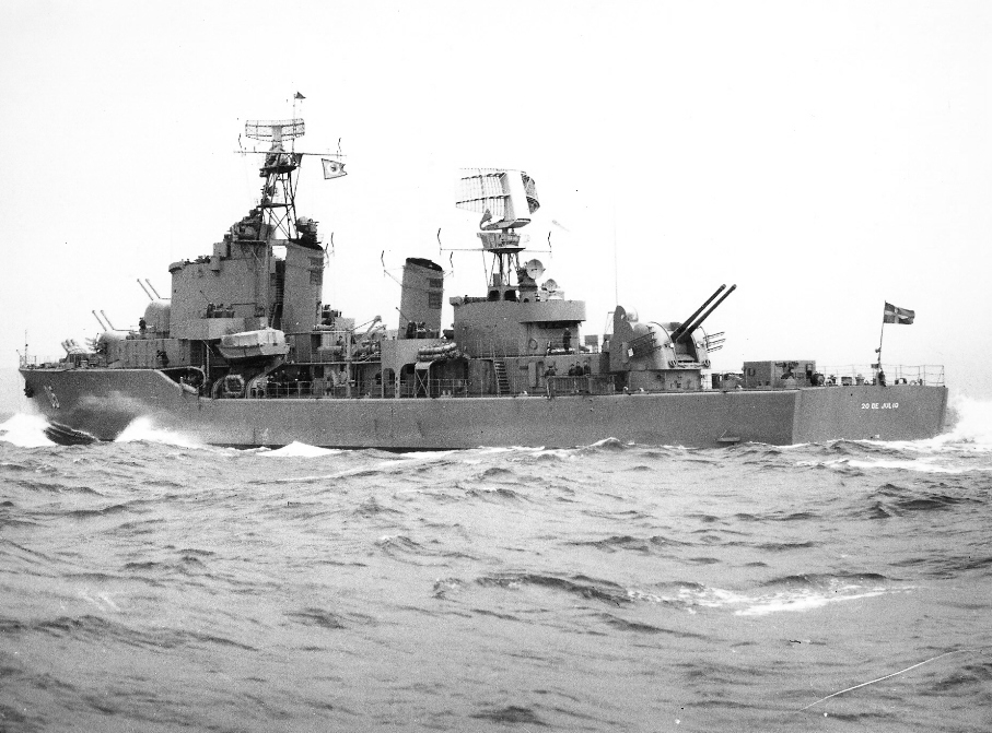 El Presidente Ospina, pasando frente al destructor ARC Caldas.